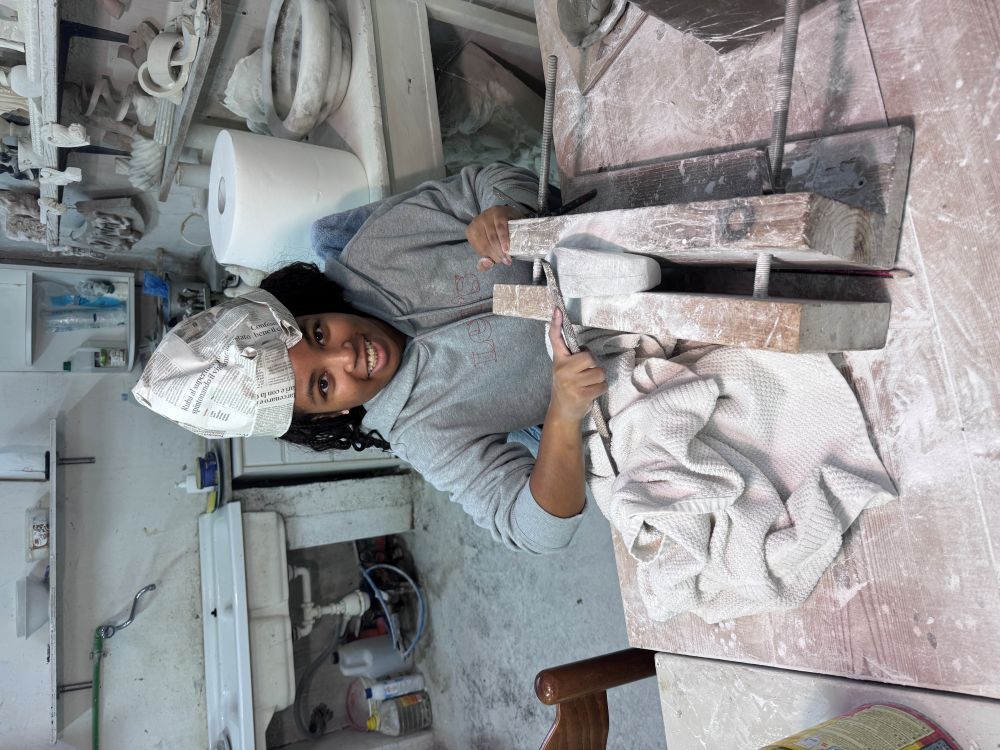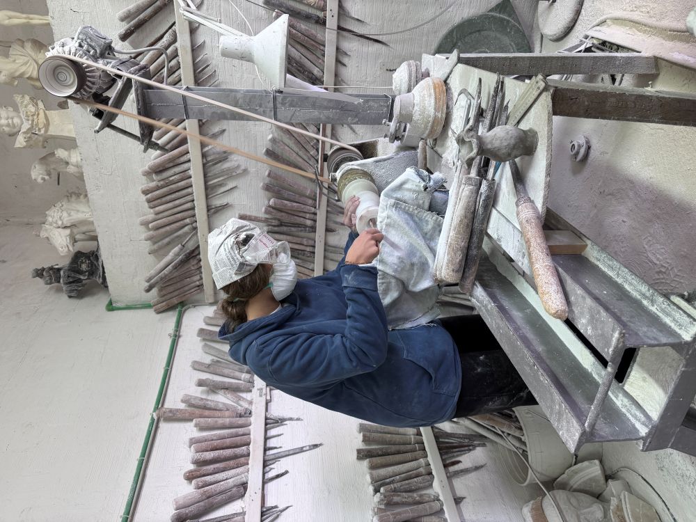 As carving progresses, it quickly becomes clear that working with alabaster is a workout. The constant sawing, chiseling, and sanding leaves us exhausted by the end of each class, but the hard work is well worth the reward. Every Tuesday, our class looks forward to returning to the alabaster studio to wear our paper hat uniforms and enjoy each others company.
