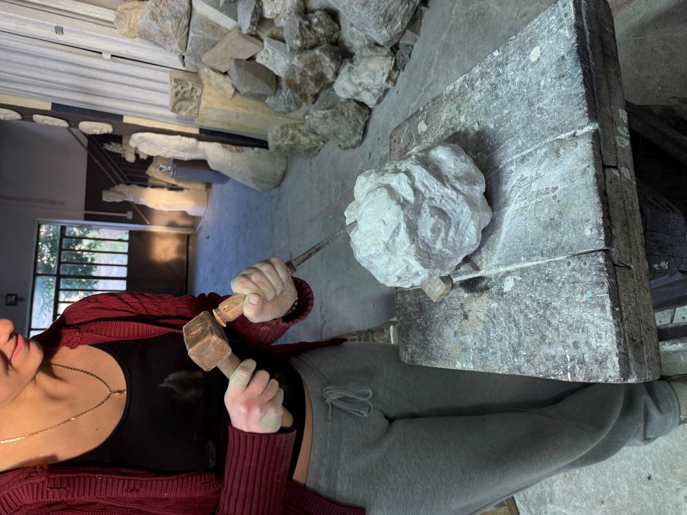 Alabaster is a long-standing traditional art form native to the Tuscan region, and it is especially rooted in Volterra. Each year, we as students get the opportunity to work with this medium and contribute to the continuation of this historic craft. Although alabaster carving is considered a dying art form, it is still celebrated for its sheer-like quality and versatility. Alabaster is a soft, fine-grained stone composed of gypsum, or hydrated calcium sulfate. It is harvested in small underground nuggets, formed millions of years ago when large bodies of water once covered the land.
