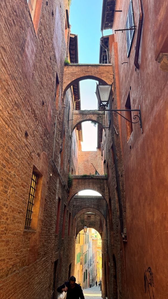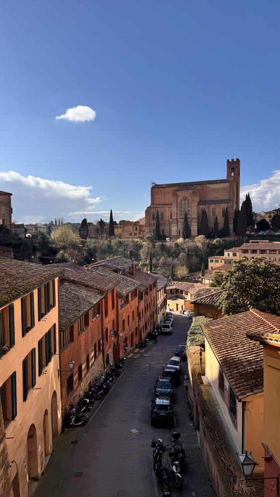 As soon as we arrived, we were immediately struck by the iconic ‘burnt Siena’ buildings, this is actually where the color gets its name. Reddish-brown clay found in the region was heated, or ‘burnt,’ to create a deeper, richer red-brown pigment known today as burnt sienna.