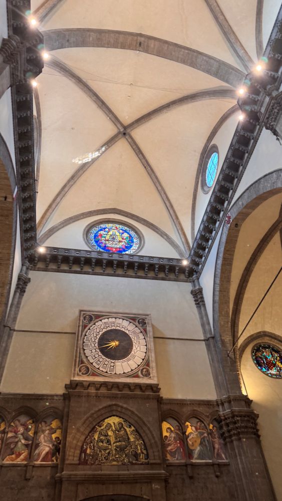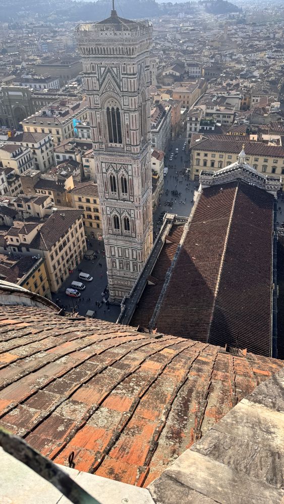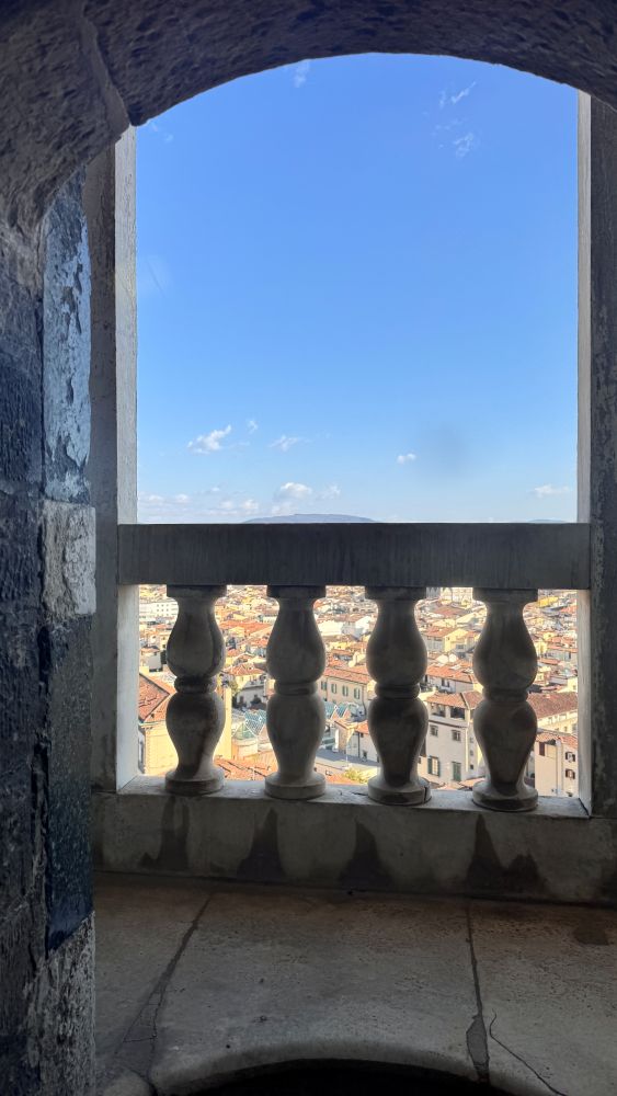 Being inside the cathedral was amazing, but climbing to the top of the dome was a whole new experience. Designed by Filippo Brunelleschi, the dome was a groundbreaking engineering feat. As we climbed the narrow, spiral stone stairs, flight after flight, we gained a new appreciation for Brunelleschi’s genius. Between the double-shell walls, we could see the herringbone brick pattern that supports the massive structure, and we even got closer views of the frescoed ceiling. Finally, reaching the top rewarded us with breathtaking panoramic views of Florence, the city at our feet felt truly unforgettable.