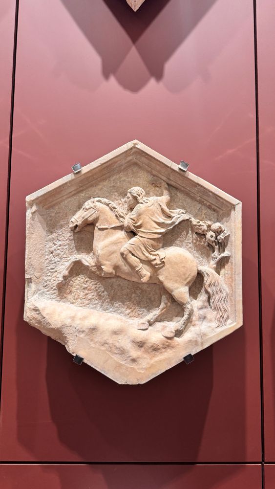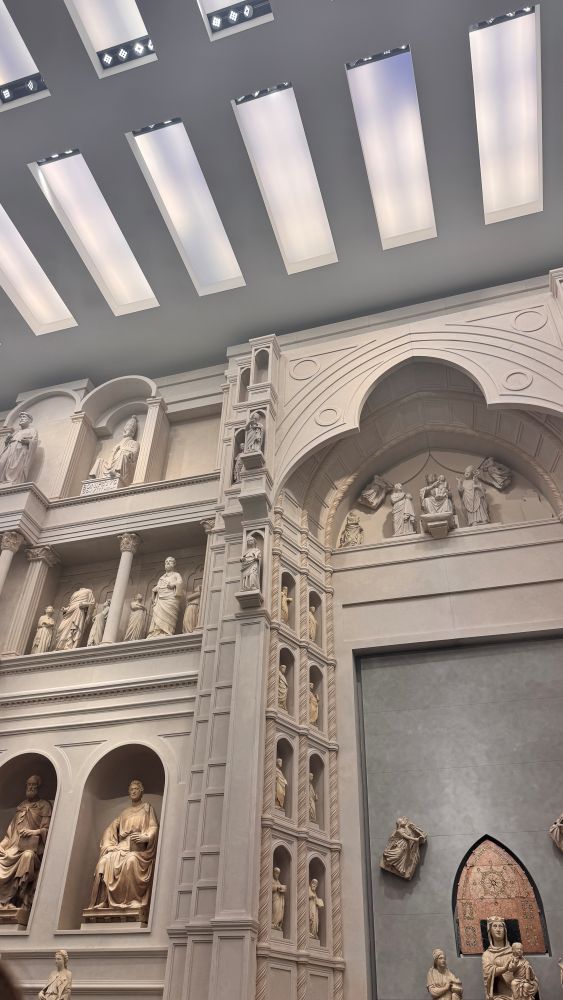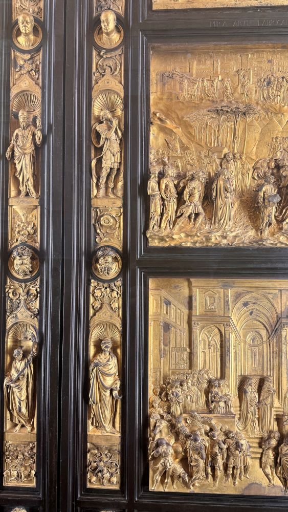 Our next stop was the Opera del Duomo Museum, which completely captivated our group. We first saw artifacts from the old cathedral façade, arranged as they had been originally, including a life-sized reconstruction in a massive back room. We also admired Ghiberti’s bronze doors, the originals that once adorned the Baptistery.
