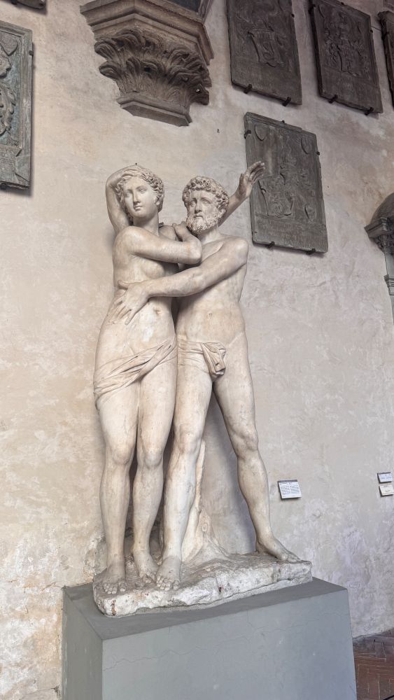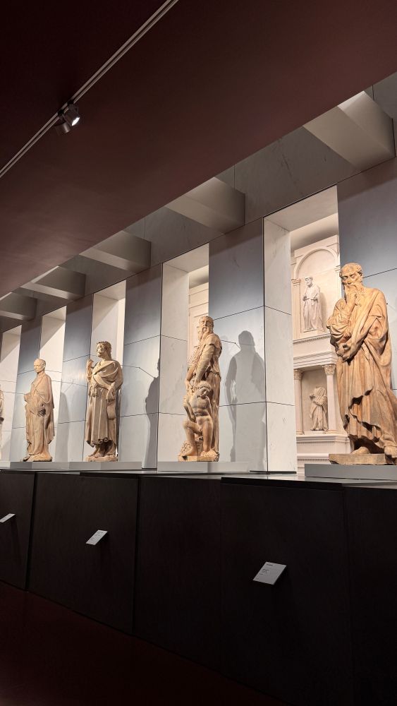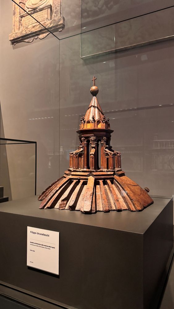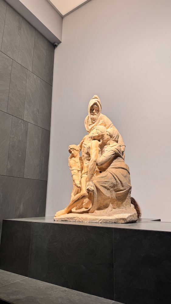 The highlight for our group, however, was seeing the wooden study models of Brunelleschi’s dome. These detailed miniatures offered a fascinating glimpse into the engineering brilliance behind the cathedral. We also stopped by Michelangelo’s unfinished “Florentine Pietà.” Unlike his polished works, this dramatic sculpture shows raw emotion and unfinished areas, giving a rare insight into Michelangelo’s creative process.