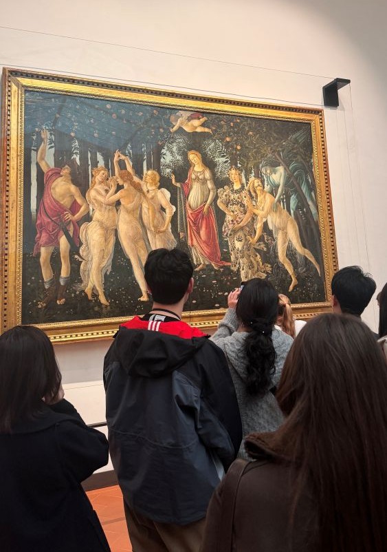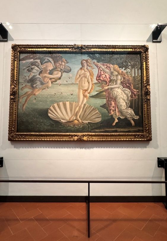 The building itself is laid out in a U-shape, with many side rooms branching off a long central hallway across three floors. The top floor holds the majority of the famous works we’ve studied in class. As we explored, we had the chance to see many important pieces that played a major role in the birth of the Renaissance. The first highlights we experienced were The Birth of Venus and Primavera by Sandro Botticelli. Seeing these paintings in person was incredible, we never truly understood their scale and detail until that moment.