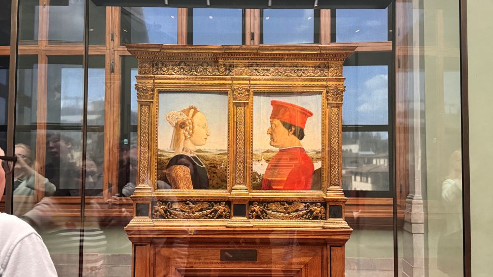 As we continued through the gallery, we saw even more incredible works, including the Diptych of Federico da Montefeltro and Battista Sforza by Piero della Francesca, Medusa by Caravaggio, and Venus of Urbino by Titian. It felt surreal to casually walk past such famous masterpieces. This visit was definitely a moment of appreciation, we realized how special it was to experience these works in person.