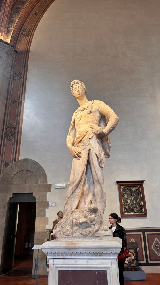 Another group went to the Museo Nazionale del Bargello. Originally built in the 13th century, it once served as the headquarters of Florence’s chief magistrate, as well as a courthouse and prison. Today, it houses an impressive collection of sculptures that provide deep insight into Renaissance art. One of the most memorable pieces the group saw was the bronze David by Donatello.