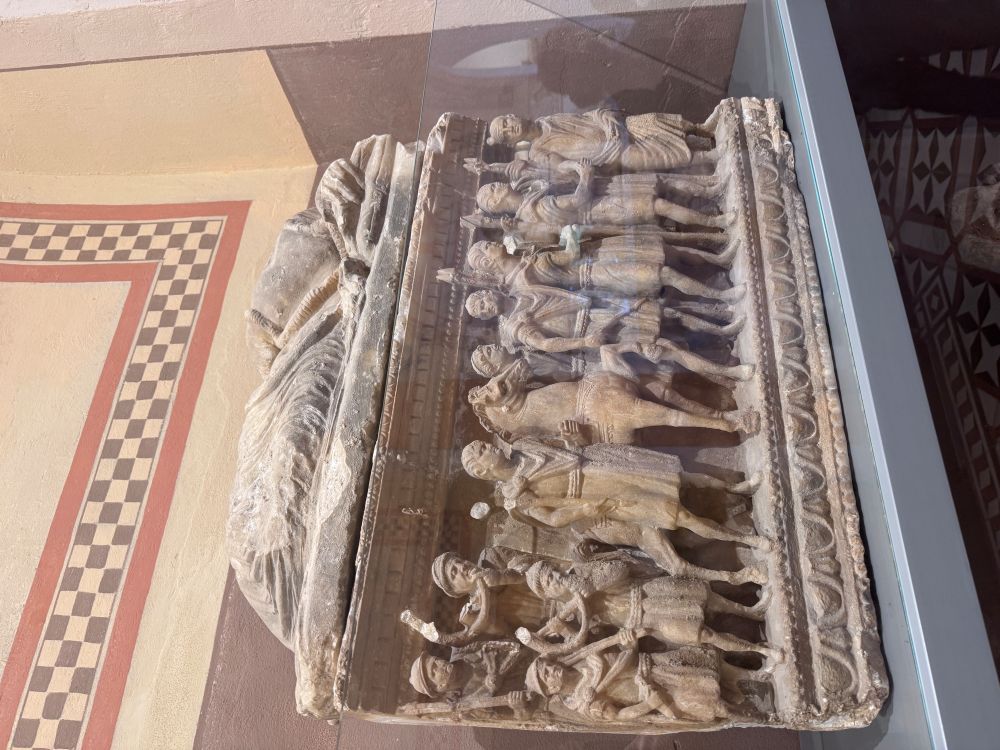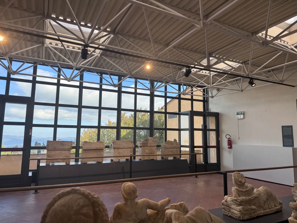 Our Social History and Art in Italy class brought us to the Museo Etrusco Mario Guarnacci, which houses one of the most important collections of Etruscan artifacts in Italy. The museum showcases a large collection of Etruscan urns, especially important because they are some of the only remains from the Etruscan era. Materials like metals, fabrics, and wood have largely disintegrated over time. Much of what we know comes from the detailed carvings and depictions on the urns themselves.